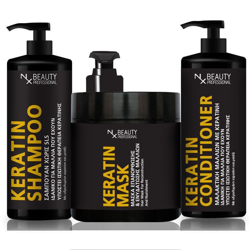 NX Beauty Professional Keratin Conditioner Αναδόμησης/Θρέψης για Όλους τους Τύπους Μαλλιών 1000ml